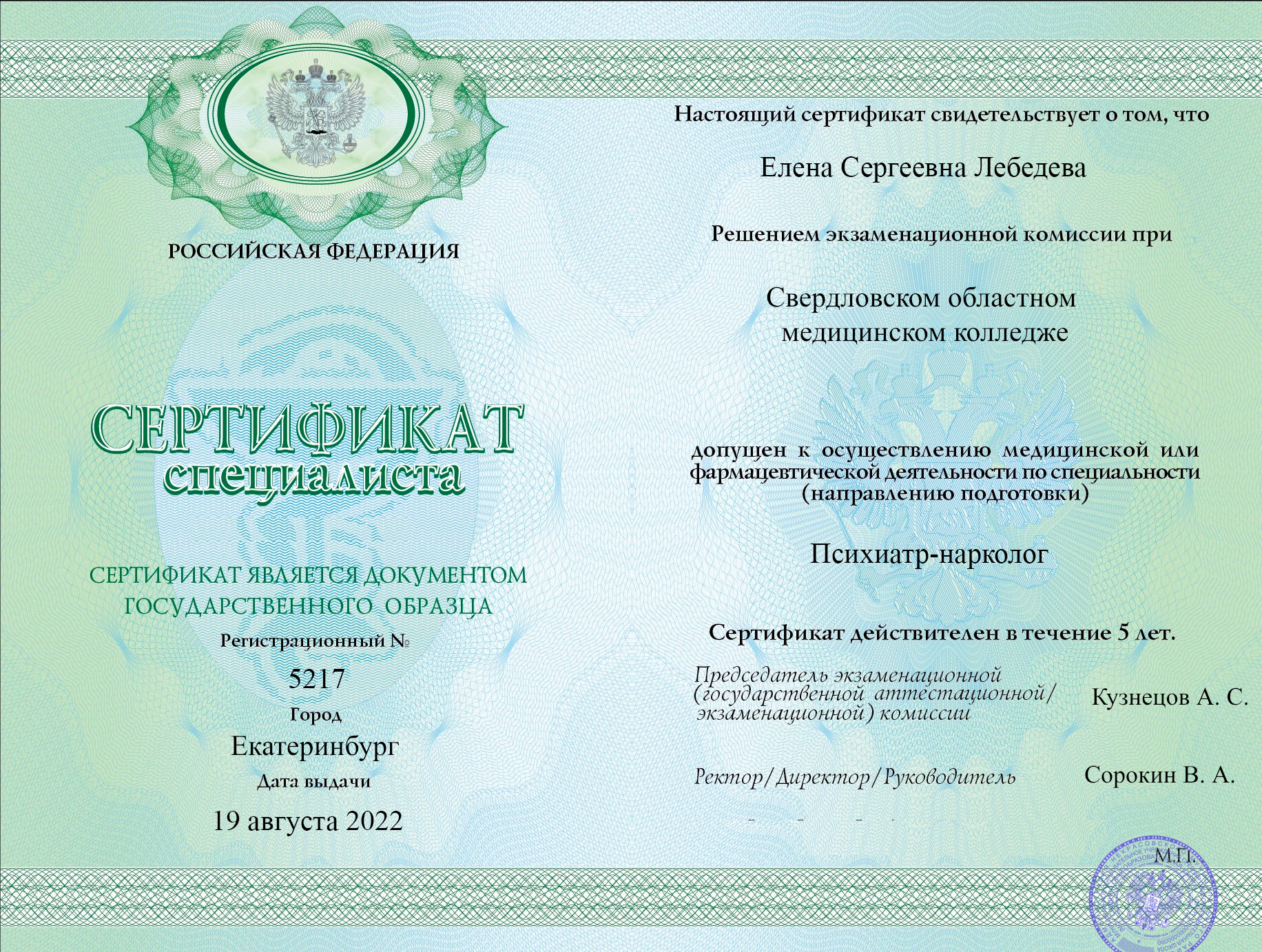 Елена Сергеевна Лебедева врач нарколог клиники доктора Стукаловой в Семилуках